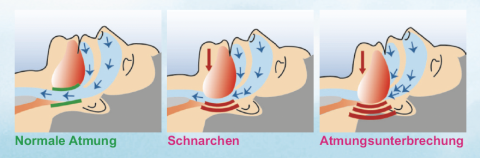 Wenn aufgrund der Atemaussetzer die Atemluft nicht mehr in die Lungen gelangt, steigt der Kohlendioxidgehalt im Blut an. Das Atemzentrum im Gehirn registriert dies und löst eine Weckreaktion (Arousal) aus, damit der Schlafende nach Luft schnappt und nicht er-stickt. Die Atmung setzt mit krampfartigem Luft holen wieder ein, dabei entstehen auch sehr laute Schnarchgeräusche.